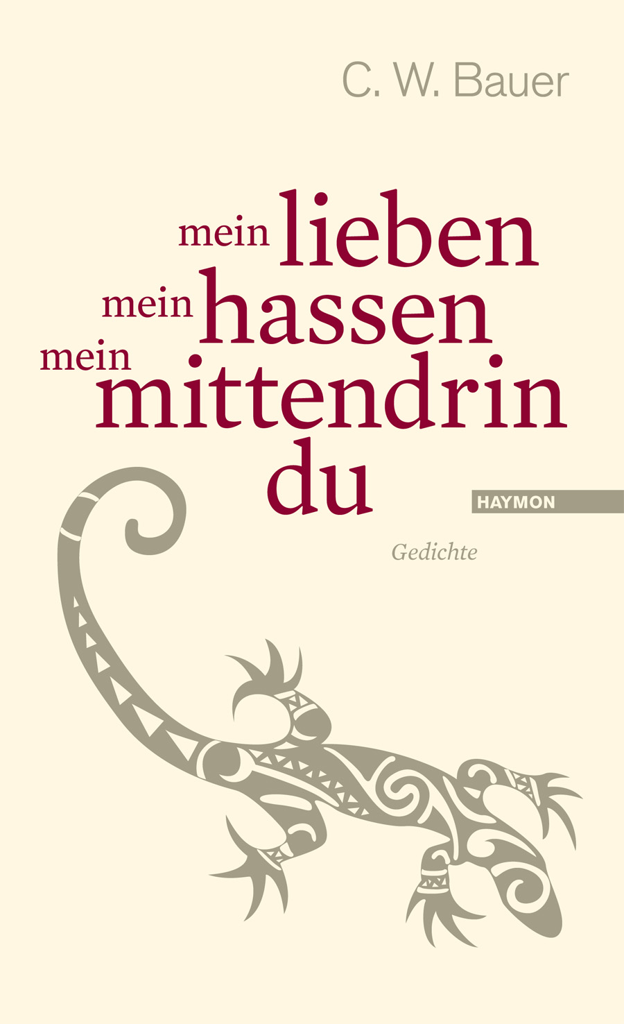 Christoph W. Bauer, geboren 1968 in Kärnten, aufgewachsen in Tirol. Verfasst Lyrik, Prosa, Essays, Hörspiele und Übersetzungen. Zahlreiche Veröffentlichungen, mehrere Auszeichnungen, u.a. Reinhard-Priessnitz-Preis (2001), Publikumspreis beim Ingeborg-Bachmann-Wettbewerb (2002), Preis des Kärntner Schriftstellerverbands (2010), Kärntner Lyrikpreis (2014), Outstanding Artist Award und Tiroler Landespreis für Kunst (beide 2015) sowie zuletzt Preis für künstlerisches Schaffen der Stadt Innsbruck (2021) und Anton-Wildgans-Preis (2023). Bei Haymon: wege verzweigt. Gedichte (1999), die mobilität des wassers müsste man mieten können. Gedichte (2001), fontanalia.fragmente. Gedichte und Prosa (2003), Aufstummen. Roman (2004), AHOI! Gedichte aus 25 Jahren Haymon Verlag (Hrsg., 2007), Im Alphabet der Häuser (2007), Graubart Boulevard (2008), Als Kind war ich weise (Hrsg., 2009), Der Buchdrucker der Medici (2009, HAYMONtb 2015), gemeinsam mit Anton Christian schweben im kopf (2010), die Gedichtbände mein lieben mein hassen mein mittendrin du (2011) und getaktet in herzstärkender fremde (2011), der Porträtband Die zweite Fremde. Zehn Jüdische Lebensbilder (2013), der Erzählband In einer Bar unter dem Meer (2013), die Gedichtbände orange sind die äpfel blau und stromern (beide 2015) und der Roman Niemandskinder (2019). Im Februar 2022 erschien sein neuer Gedichtband an den hunden erkennst du die zeiten, im Frühjahr 2024 folgt der Prosaband Trotta und ich. Im Februar 2026 erscheint die Novelle Lärm. https://www.cewebe.com