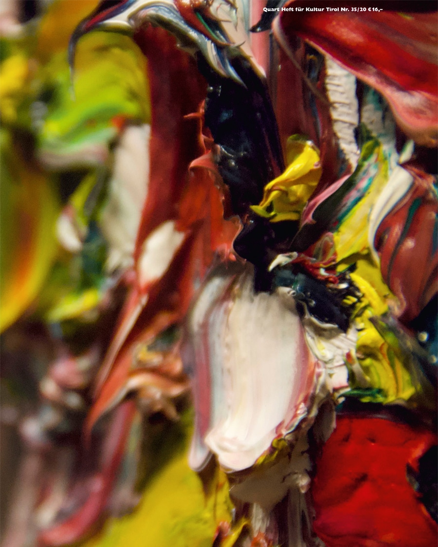 Quart versammelt verlässlich erstklassige Vertreter aus den Bereichen Literatur, Kunst, Design und Fotografie. Das Cover von Quart 35 stammt von Rens Veltman, die Originalbeilage von Verena Dengler. Die linken Seiten gestaltet Sven Sachsalber, Kunstbeitrage steuern Anneliese Schrenk und Nicolas Jasmin bei. Anna Weidenholzer widmet sich der Landvermessung, Irene Dische dem Fließtext. Der Marginaltext kommt vom vor 20 Jahren verstorbenen Architekten Josef Lackner. Die Schriftstellerin Andrea Grill trifft den Kunstsammler Rafael Jablonka. Weitere Beiträge verfertigen u. a. der Musikethnologe Raymond Ammann, der Chemiker und Philosoph Jens Soentgen und der Fotograf Nicolo Degiorgis.